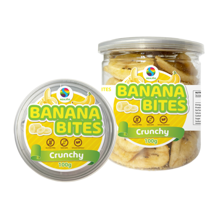 Crunchy banana bites pet can 100g